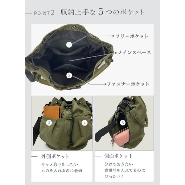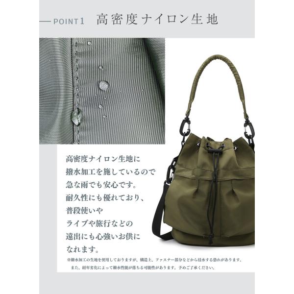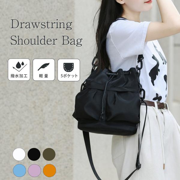 6色 ショルダーバッグ 巾着バッグ トートバッグ 3WAY レディース 高密度 ナイロン 撥水 多収納 サイドポケット カジュアル アウトドア ライブ 旅行