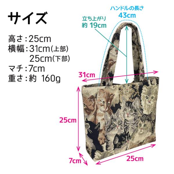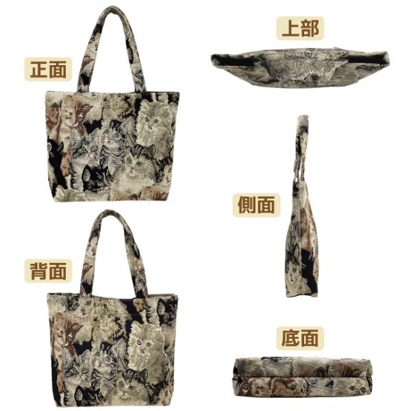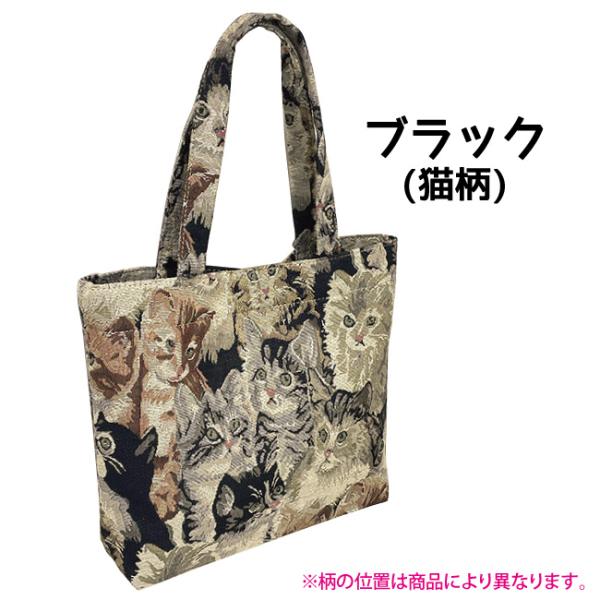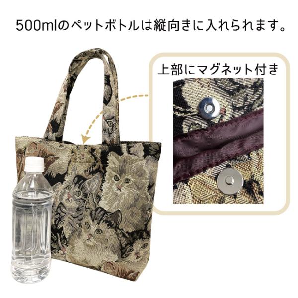 トートバッグ ゴブラン織り風 猫 にゃんこ クラシカル 上品 高見え プチプラ 白 黒 普段使い サブ 500mlペットボトル収納可 レディース ギフト 誕生日 4983
