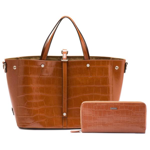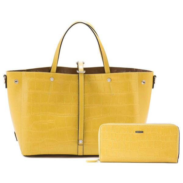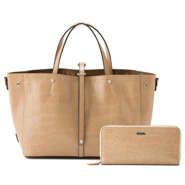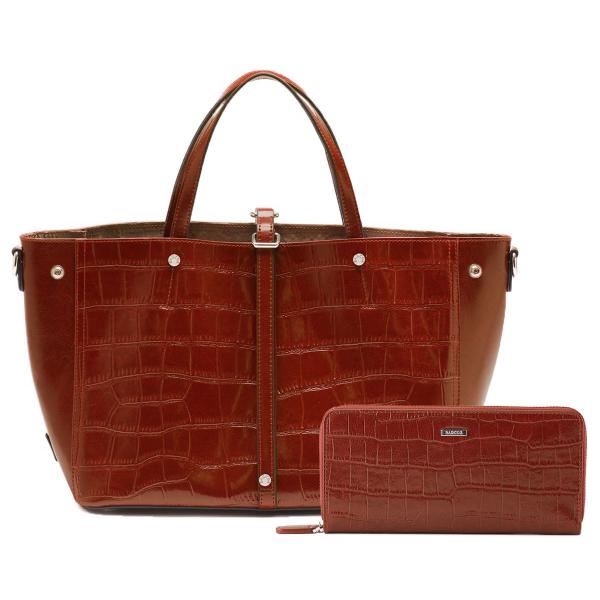 【セット商品】 BARCOS クロコダイル型押し シャイニング レザー トート & ロングウォレット レディース 全7色 ONESIZE バルコス