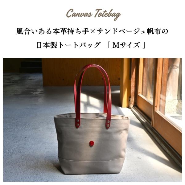 帆布トートバッグMサイズ サンドベージュ×選べる本革持ち手6色