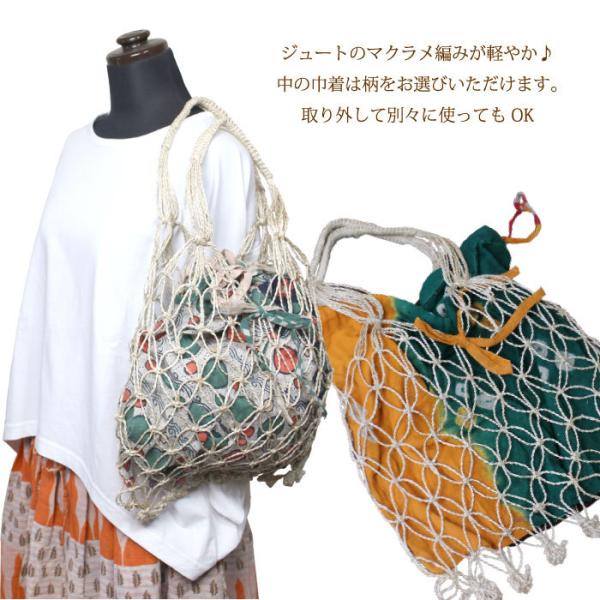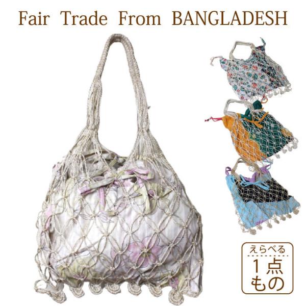 マクラメ トートバッグ PeopleTree リサイクルサリーマクラメ巾着バッグ フェアトレード(メール便対応)