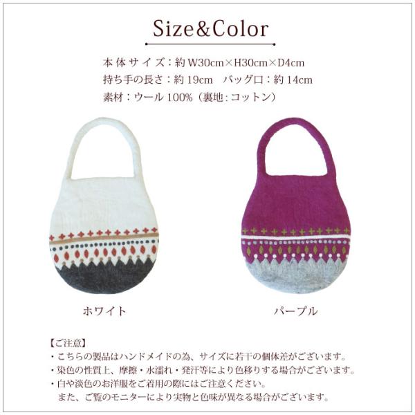 トートバッグ シサム工房 フェルトバッグ 刺繍 ネパール フェアトレード ウール100% (ラッピング対応)