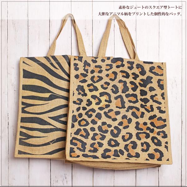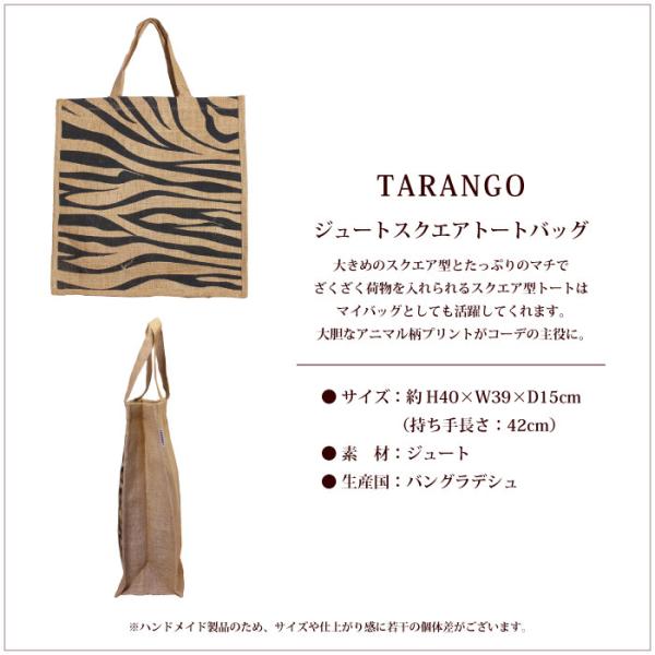 ジュートバッグ トート TARANGO ジュートスクエアトートバッグ フェアトレード アニマル柄 麻エコバッグ