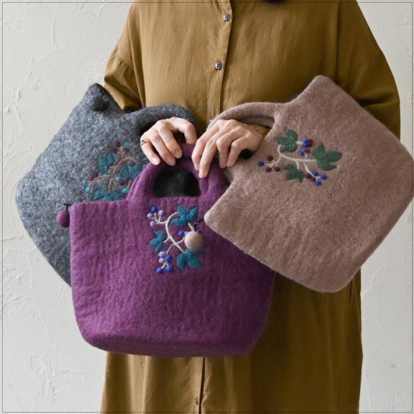 フェルトバッグ トート シサム工房 フェルトの野ぶどうバッグ フェアトレード(ラッピング対応)