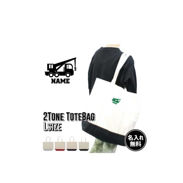 レッカー車 名入れ2トーンキャンバストートバッグLサイズ 約15L レディース メンズ 帆布 かわいい おしゃれ 乗り物 車 はたらく 趣味