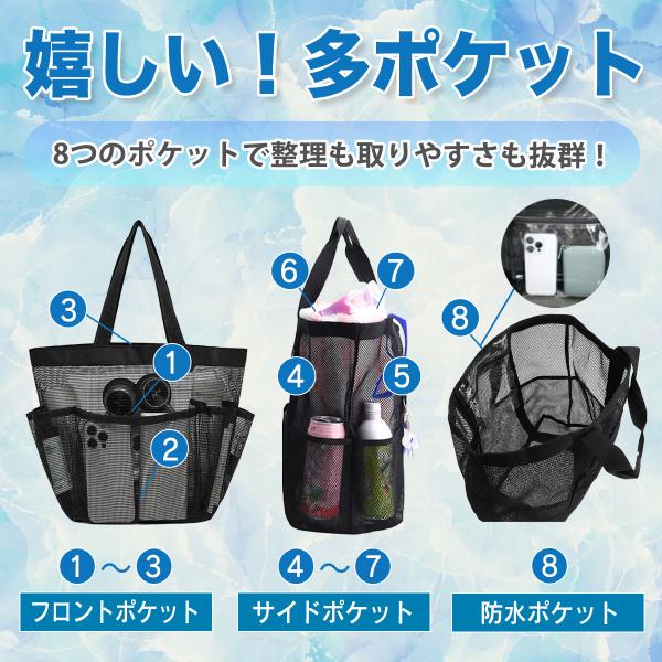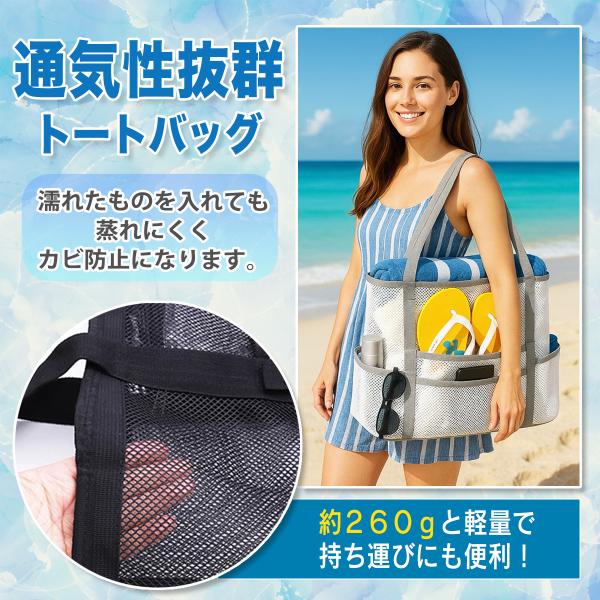 スパバッグ 温泉バッグ メッシュバッグ トート メッシュ トートバッグ サウナバッグ プール 大容量 海 トートバッグ ポケット付き 公園 砂場 水泳 温泉 お風呂
