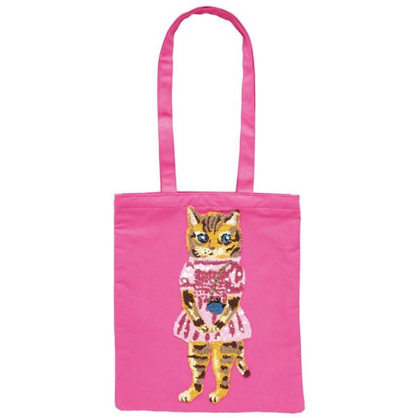 ナタリー・レテ フラッフィー・レクタングル・トートバッグ マヤ プリンセス・キャット猫のふわもこ刺繍トートバッグ ふわふわ もこもこ