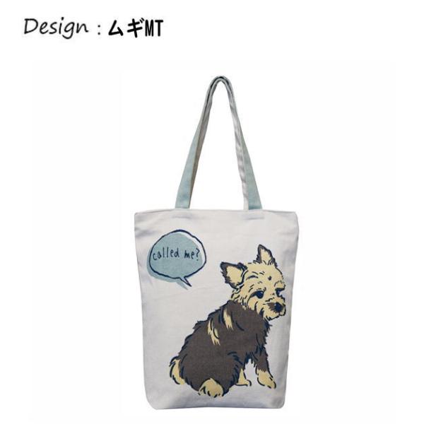 キャンバストートバッグ 縦型トート 天ファスナー付き アニマル 犬 動物 A4サイズ可 通勤通学 ホワイト まめしば パグ ダックス コーギ― シュナウザー