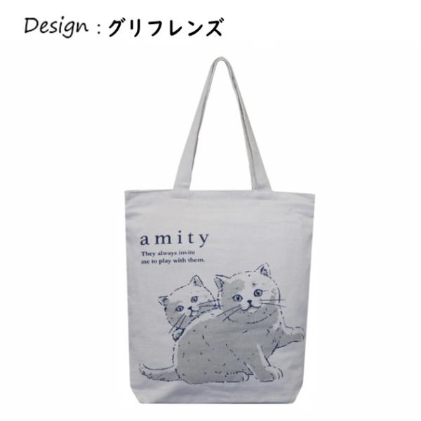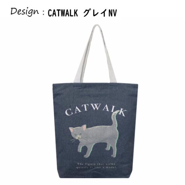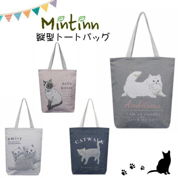 Mintinn キャンバストートバッグ 縦型トート猫 天ファスナー付き ポケット 手提げデザイントート 帆布 ねこ A4サイズ可 通勤通学 ミントイン ネコ