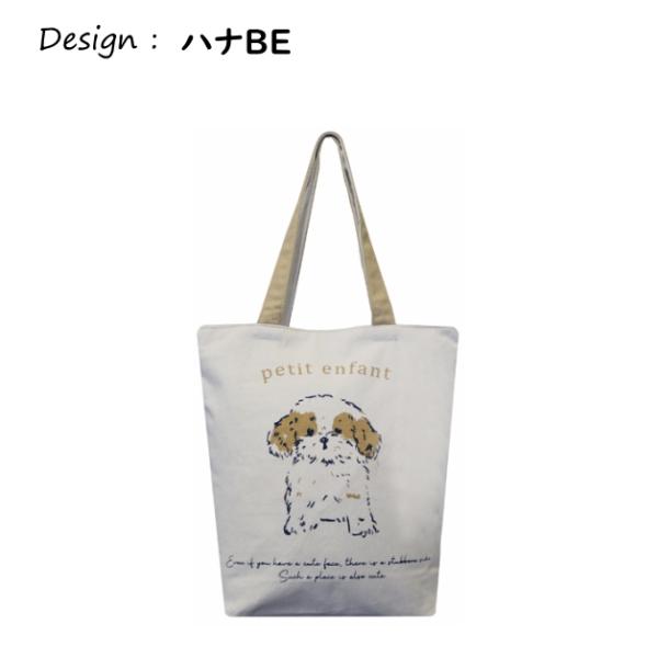 キャンバストートバッグ トートバック 縦型トート 天ファスナー付 内側ポケット 帆布 犬 ドッグ ワンちゃん 愛犬 Mintinn