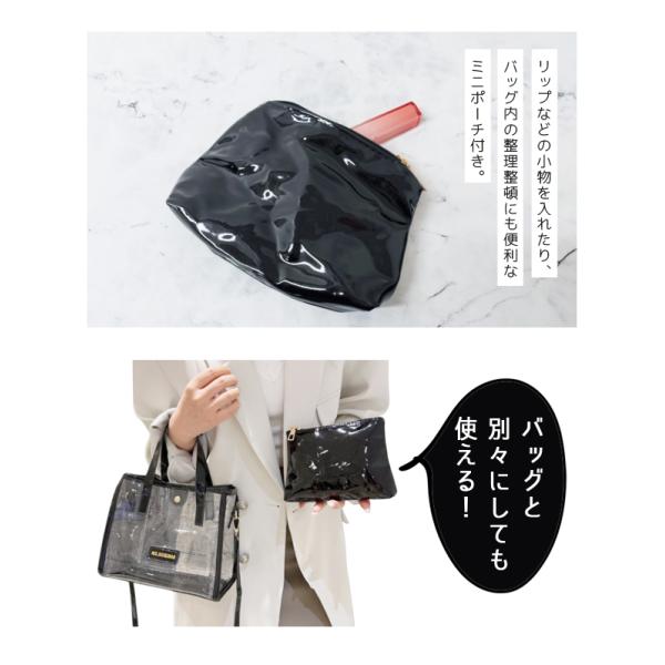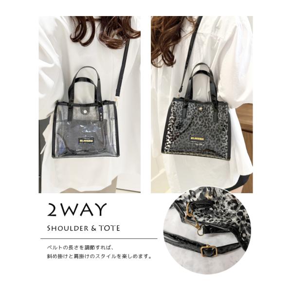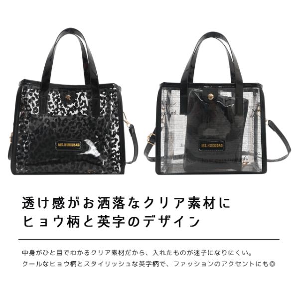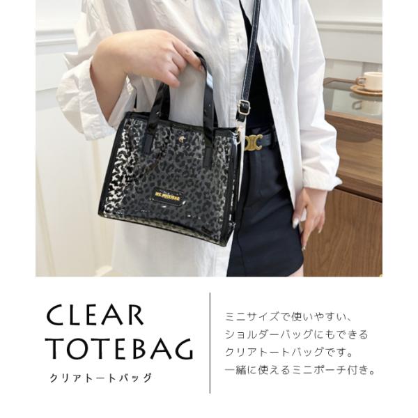 クリアバッグ トートバッグ ビニールバッグ ヒョウ柄 英字柄 ショルダーバッグ レディース ポーチ付き ミニ 透明バッグ 2WAY GPT 1点迄メール便OK(gu1c852)