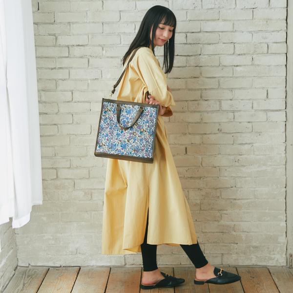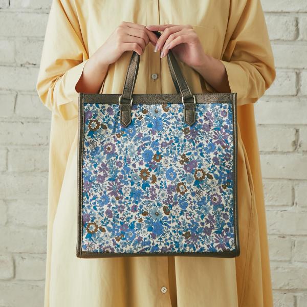 SALE スクエアトートバッグ ブルーグレー Emily LIBERTY リバティプリント トートバッグ プレゼント 女性 2024AW