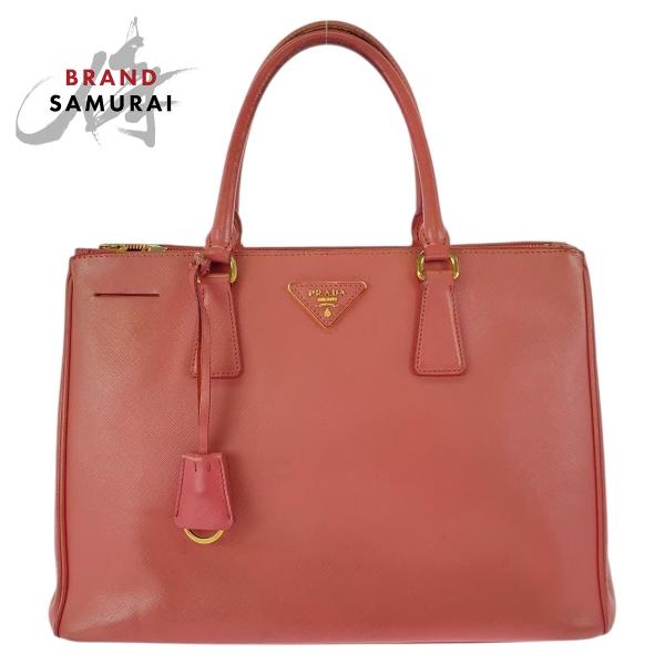 PRADA プラダ ガレリア サフィアーノ 三角ロゴプレート ピンク ゴールド金具 レザー トートバッグ ハンドバッグ 505859