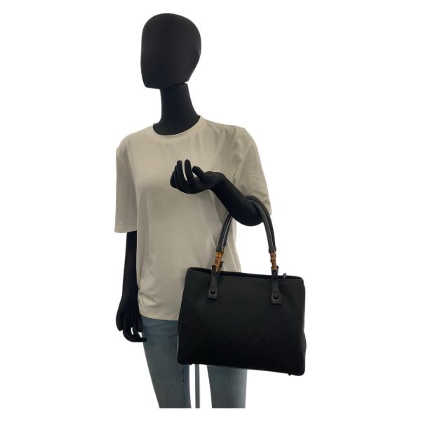美品 GUCCI グッチ バンブー ブラック 黒 GGキャンバス/レザー 112526 トートバッグ ハンドバッグ レディース 506158