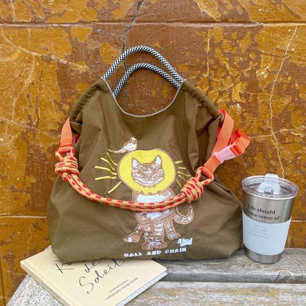 トートバッグ 軽量 買い物 肩掛け 猫 刺繍 大きめ A4 かわいい トートバッグ 動物 エコバッグ 花柄 刺繍 刺繍バッグ トートバック サブバック