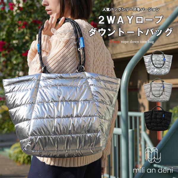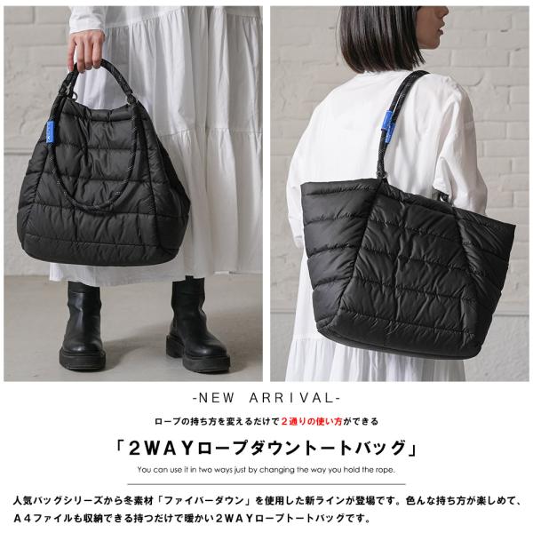 2WAYロープダウントートバッグ ファイバーダウンバッグ A4サイズ収納可能 ショルダーバッグ トートバッグ 軽量 大容量 レディース ユニセックス ポイント消化