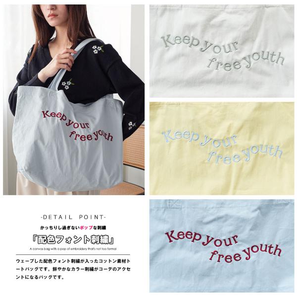 刺繍フォントトートバッグ ショルダーバッグ トートバッグ 英字刺〓 キャンパスバック 軽量バ 大容量 A4サイズ レディース ユニセックス ポイント消化 爆買