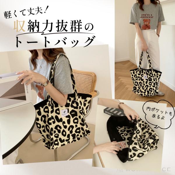 ヒョウ柄 トートバッグ レディース 大容量 A4 キャンバス レオパード 韓国風 大きめ 内ポケ 肩掛け 通勤 通学 ママバッグ 春夏