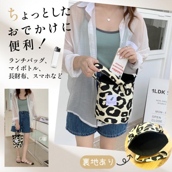 トートバッグ レディース 軽量 ミニ バケツバッグ キャンバス 韓国風 ヒョウ柄 おしゃれ ランチバッグ コンパクト レオパード
