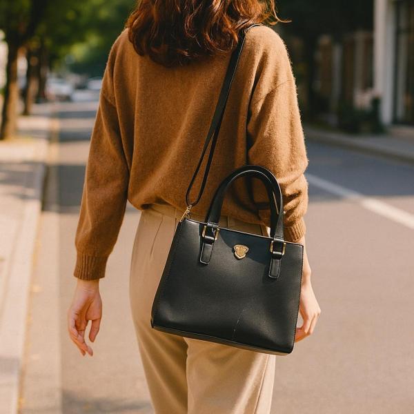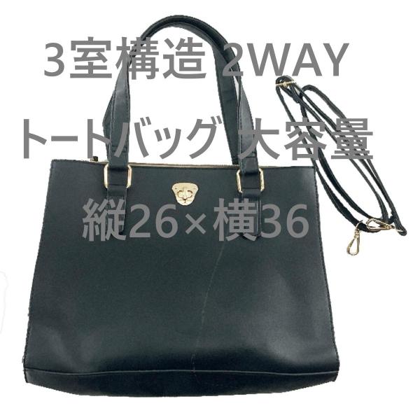 2WAYトートバッグ 3室構造 大容量 縦26x横36cm ブラック