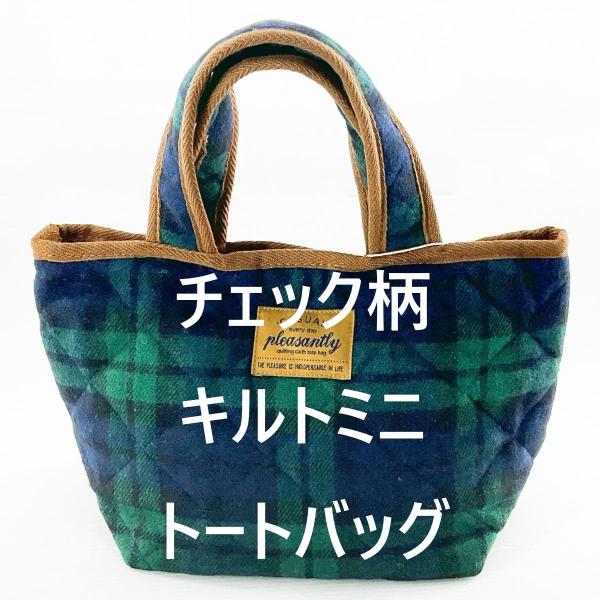 チェック柄 キルトミニトートバッグ レディース チェック柄 グリーン