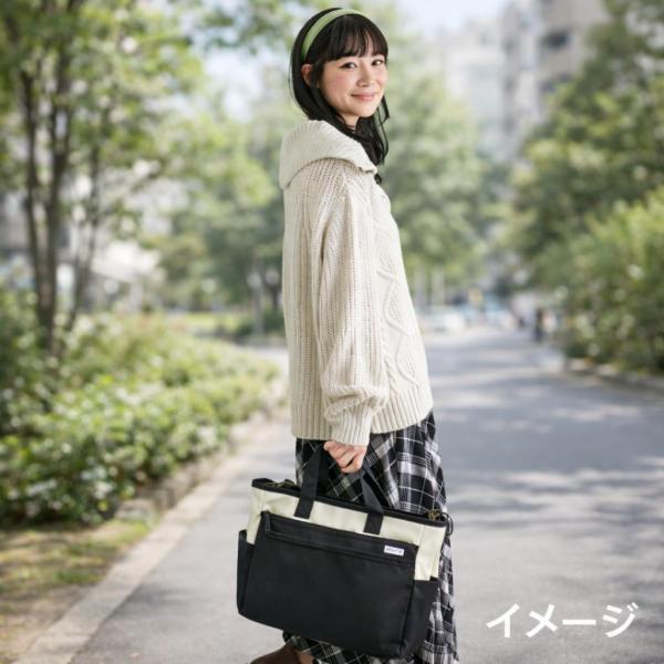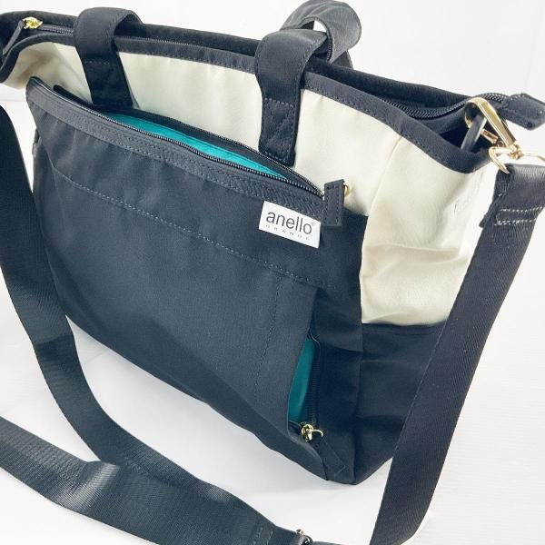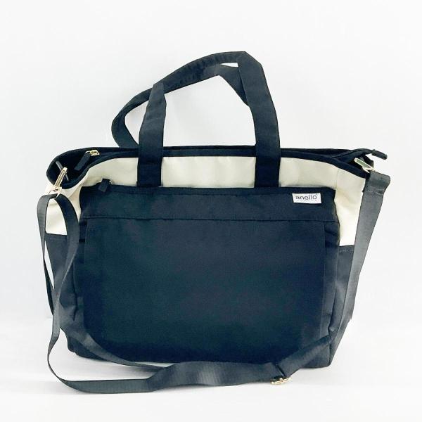 2WAY トートバッグ anelloGRANDE アネログランデ はっ水杢調 10ポケット A4対応 ホワイトxブラック