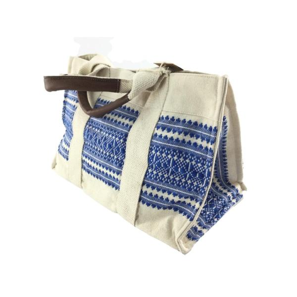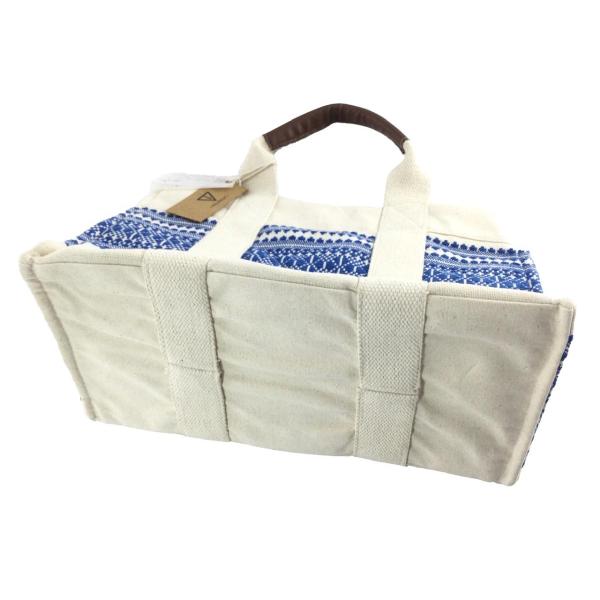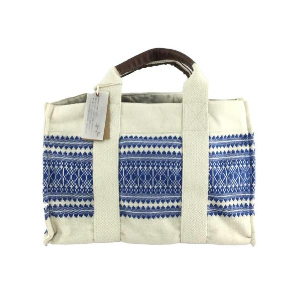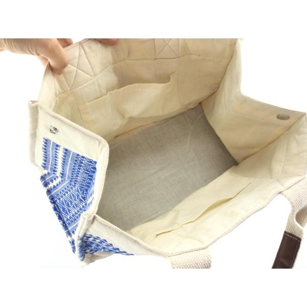トートバッグ インディア刺繍 デザインキャンバストート インド綿 23x35cmマチ19cm ブルー