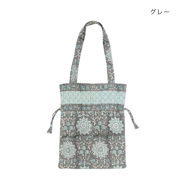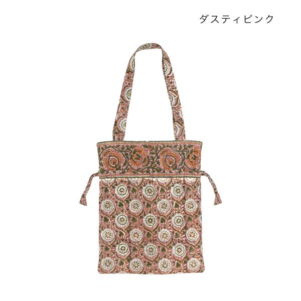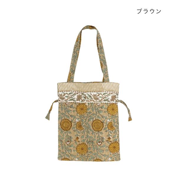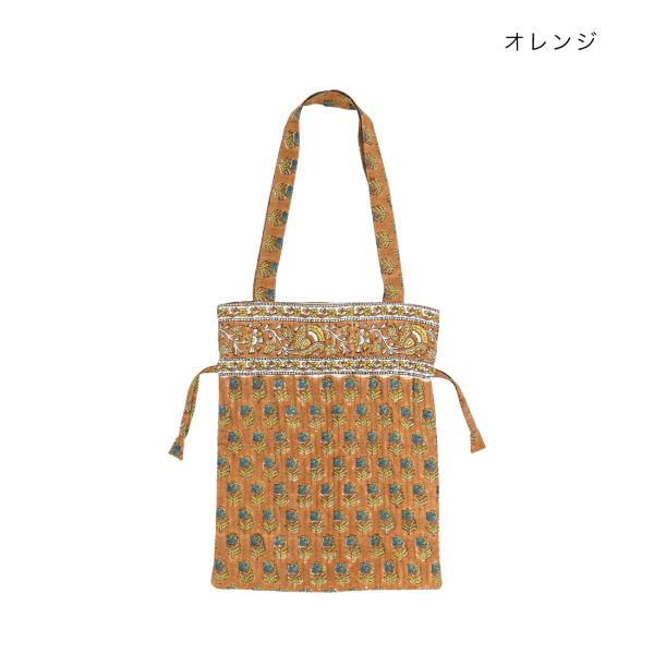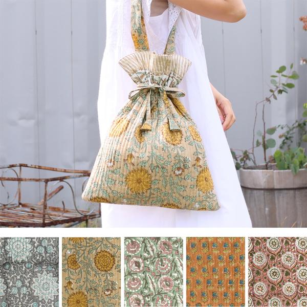 コンフィー ブロックプリント キルト巾着トート トートバッグ インド綿 ブロックプリント ハンドプリント