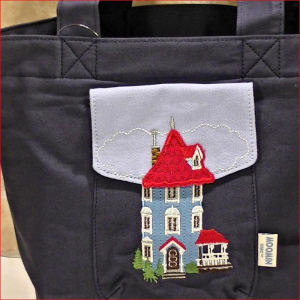 ムーミンやしき トートバッグ とんがり屋根のムーミンハウス MOOMIN アップリケハウス 0121-63