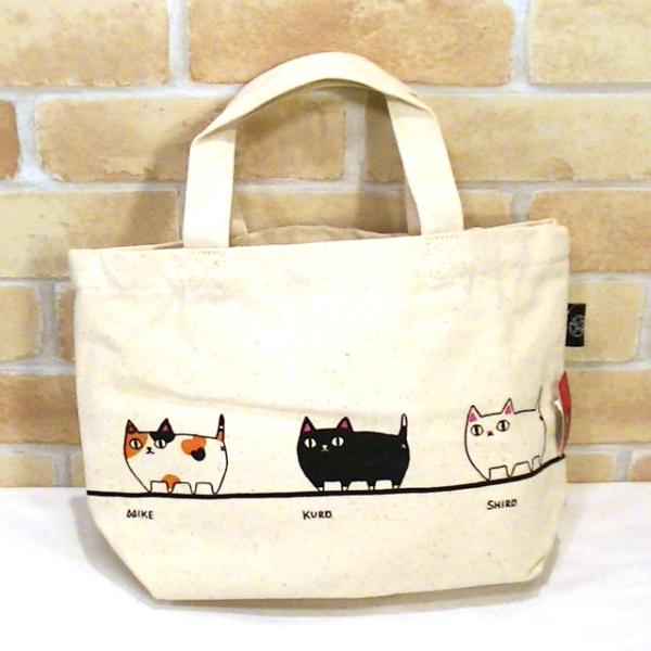 トートバッグ 小サイズ 猫柄 キャンバストート ミニトート ランチトート 布バッグ 綿 コットン かばん 手提げ 猫雑貨・行列 0316-12