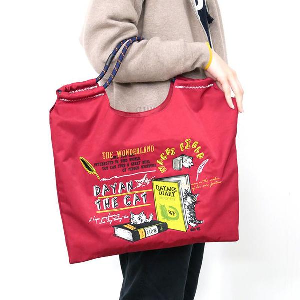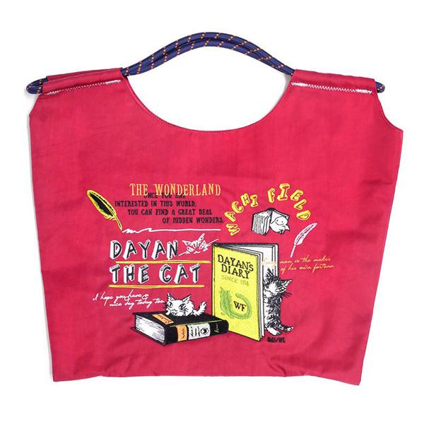 刺繍トート 本・エンジ わちふぃーるどダヤン