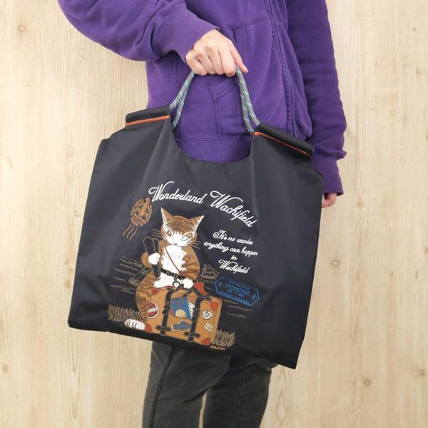 刺繍トート トラベル・黒 わちふぃーるどダヤン