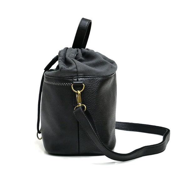 レザーコンビ巾着ミニショルダー 黒 わちふぃーるどダヤン
