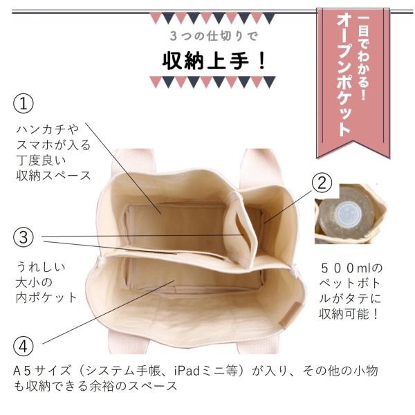 ミニトートバッグ レディース 送料無料 キャンバス 仕切り ポケット 多収納 整理 かわいい シンプル おしゃれ 無地 帆布 コットン 綿