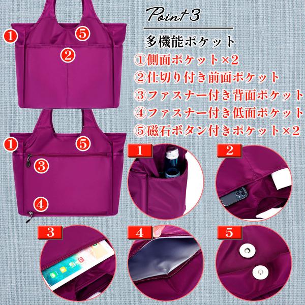 トートバッグ レディース ナイロン 通勤 通学 ママバッグ ビジネス a4 ブラック ブルー レッド パープル 30代 40代 50代 防水 サブバッグ A4 ノートPC