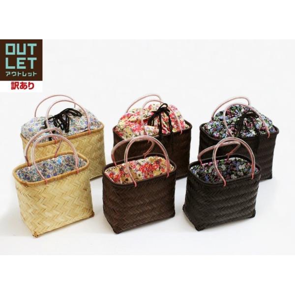 《アウトレット・訳あり品》【小・Sサイズ・レッド】巾着付き竹かごバッグ