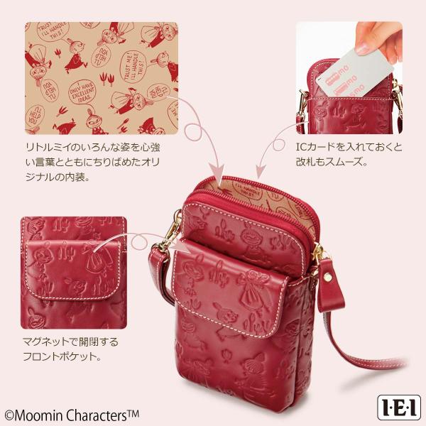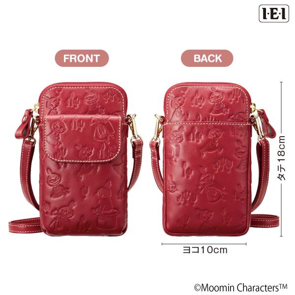 リトルミイ 赤いラム革のスマホポシェット ナチュラルレザー ムーミン 本革 牛革 軽量 ミニサイズ 高級 かわいい IEI インペリアル エンタープライズ