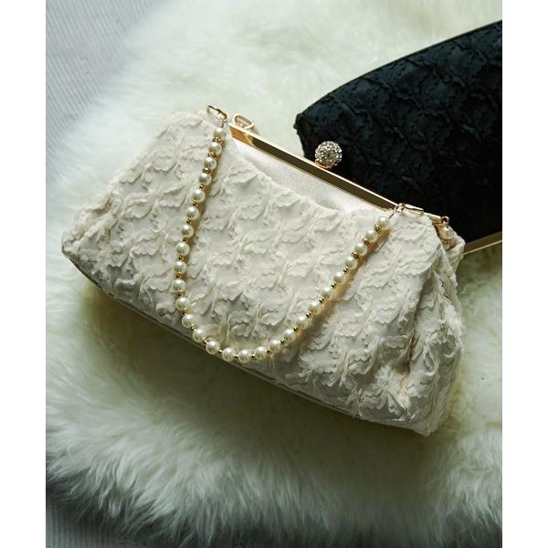 クラッチバッグ パーティーバッグ レース×サテンがま口パーティーバッグ レディース