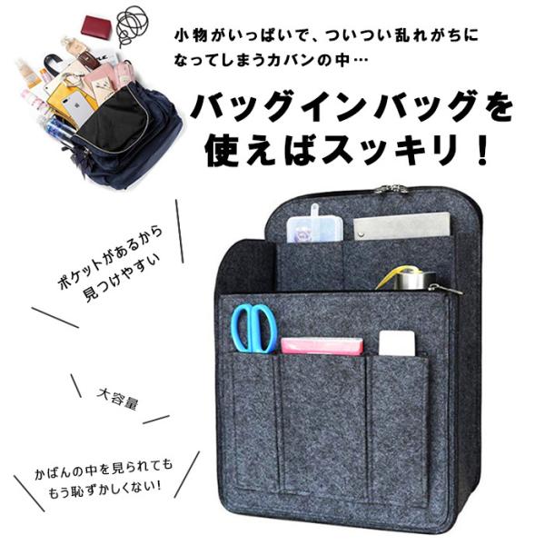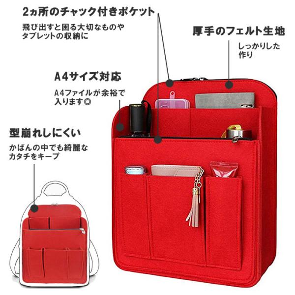 バッグインバッグ リュック A4 縦型 自立 Lサイズ フェルト生地 トートバッグ インナーバッグ 中身 整理 便利グッズ 爆買