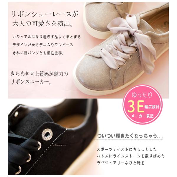 【可愛い足元・歩きやすい】スニーカー リボン sonopieno ソノピエノ ローカット 靴 レディース ラインストーン グリッター 軽量 防滑 フラット 3e