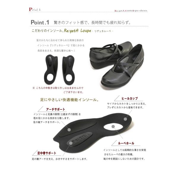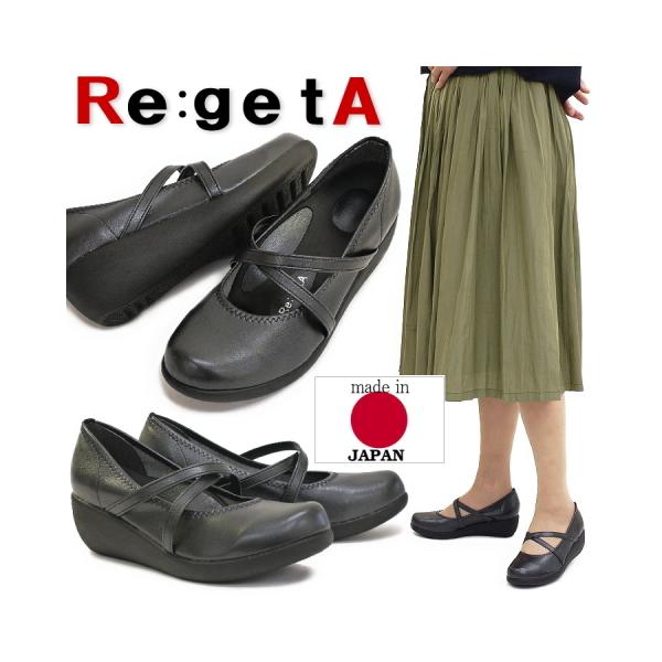 Re:getA リゲッタ 厚底フラット 靴 日本製 オフィス ラウンドトゥ クロスベルト シューズ
