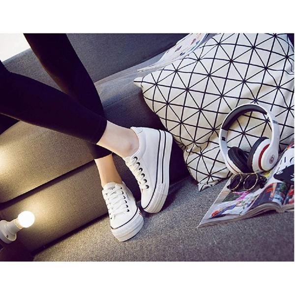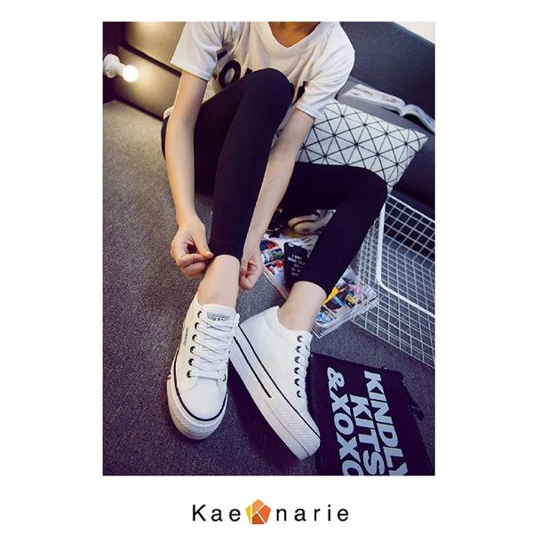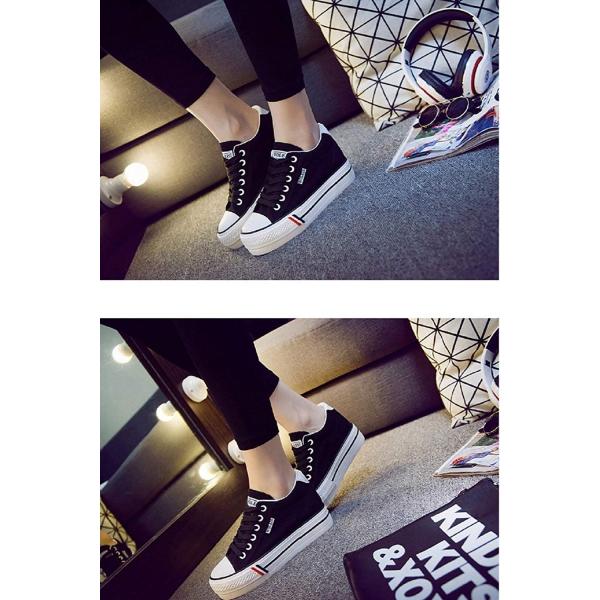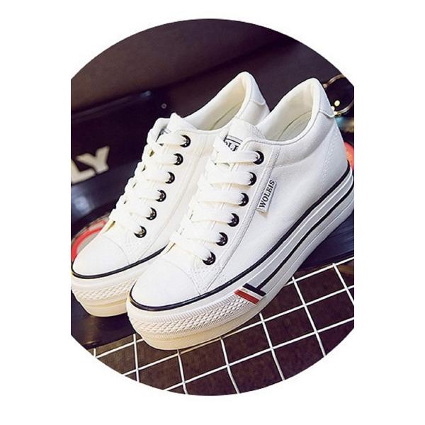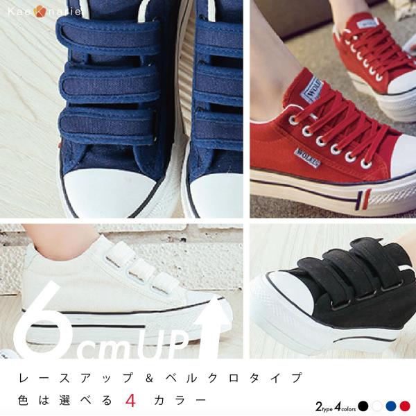 厚底 インヒール キャンバス スニーカー レディース シューズ 美脚/2種4カラー レースアップ・ベルクロ /ホワイト ブラック ネイビー レッド Kaenarie