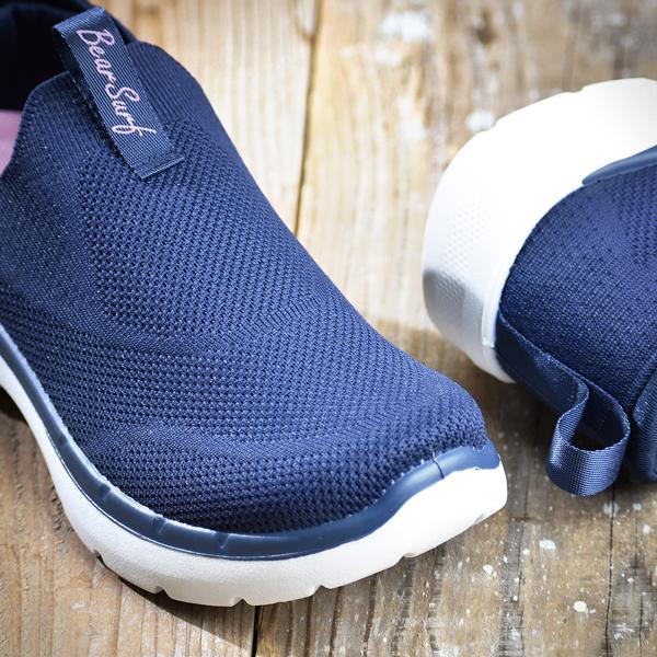 スニーカー レディース スリッポン ウォーキングシューズ ひもなし 靴 軽量 黒 ネイビー BEARSURF