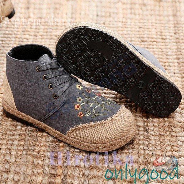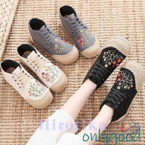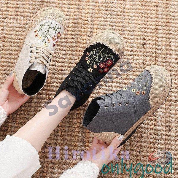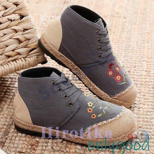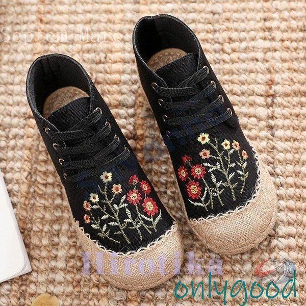 秋靴 レディース フラットシューズ 花柄 森ガール 民族風 かわいい ママシューズ ゾンチー やさしい雰囲気で履ける 個性を楽しむフラットシューズ