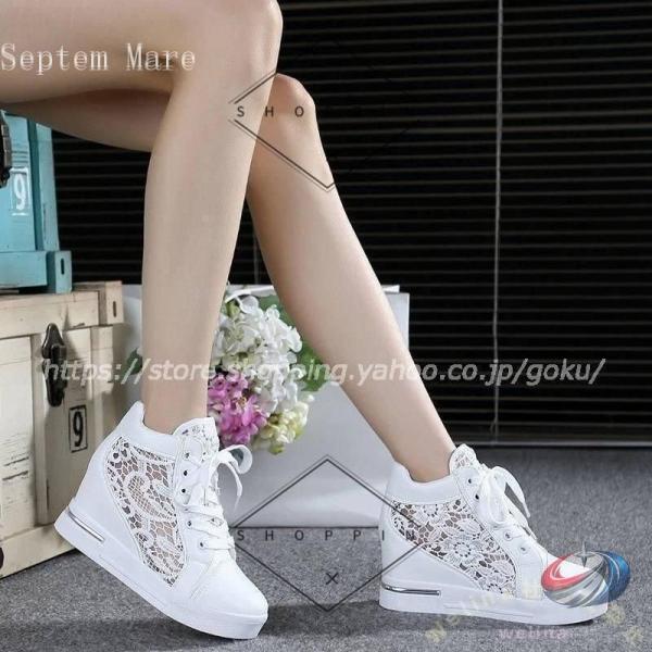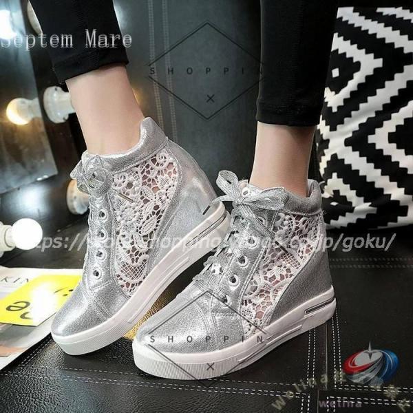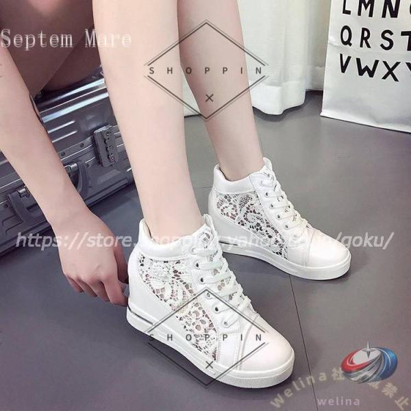 スニーカー レディース 8cmアップ インヒール 厚底 ハイカット ゾンチー シースルー素材が春夏に映える きれいめに盛れる脚長スニーカー