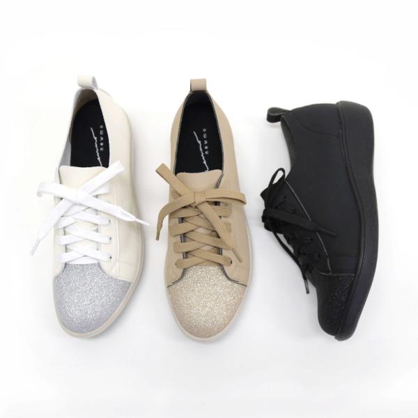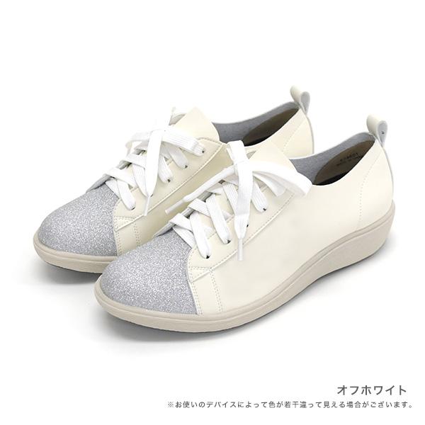 スニーカー ストレッチ レースアップ グリッター キラキラ 甲高 幅広 外反母趾 3E 3e レイン オールウェザー レディース ゆったり ウォーキング newmo No.674601