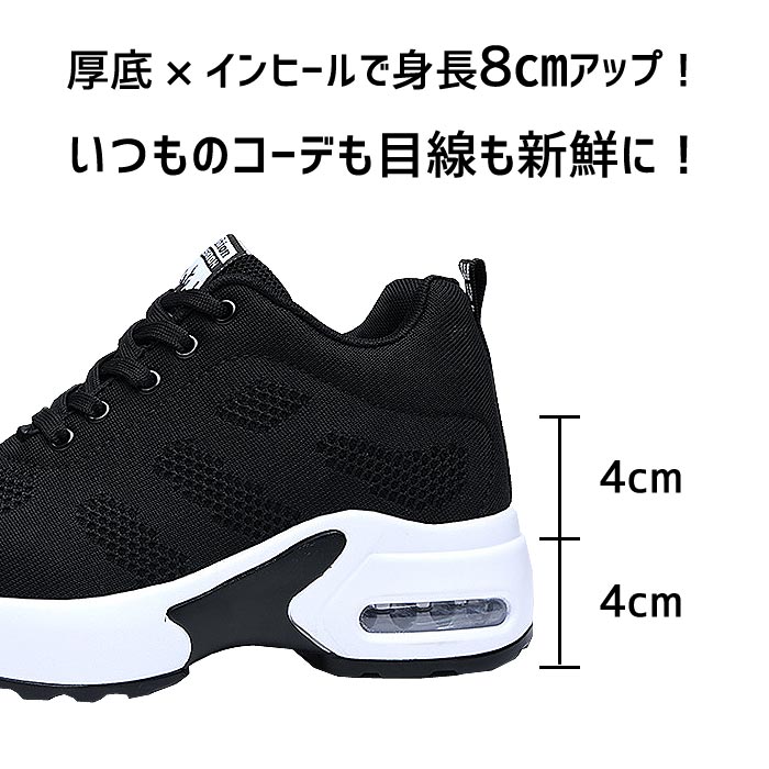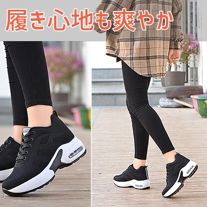 厚底スニーカー レディース スニーカー 春 夏 白 黒 おしゃれ 靴 インヒールスニーカー 軽量 歩きやすい 疲れにくい メッシュ 美脚 ^bm1125^