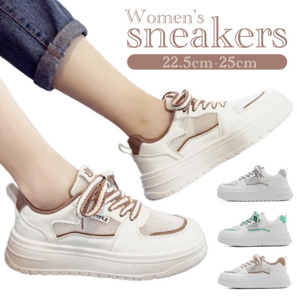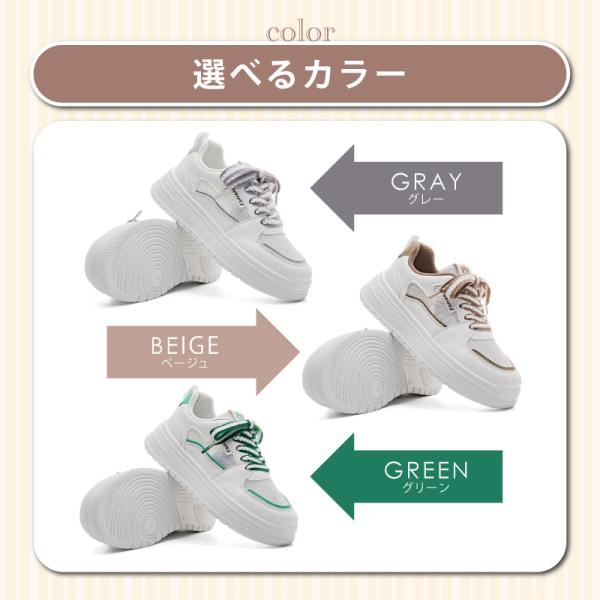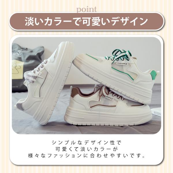 スニーカー レディース 厚底 幅広 可愛い シンプル 女の子 韓国 ファッション 白 緑 ベージュ