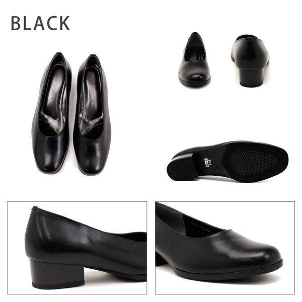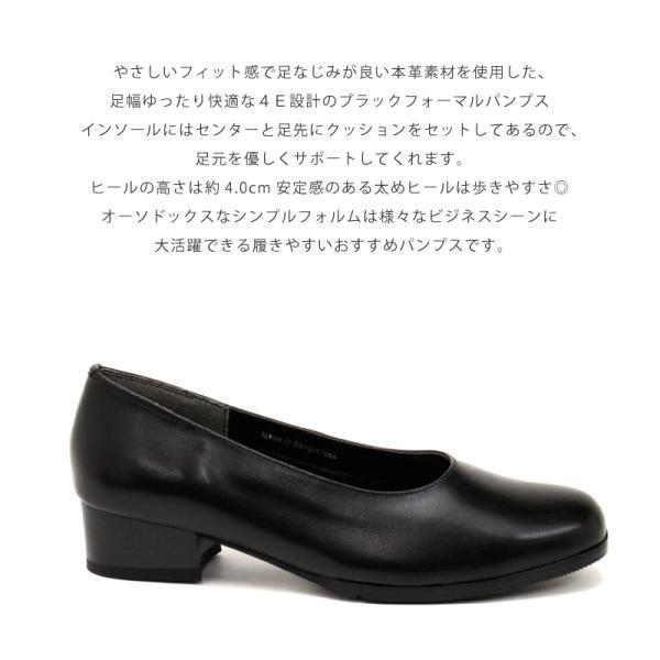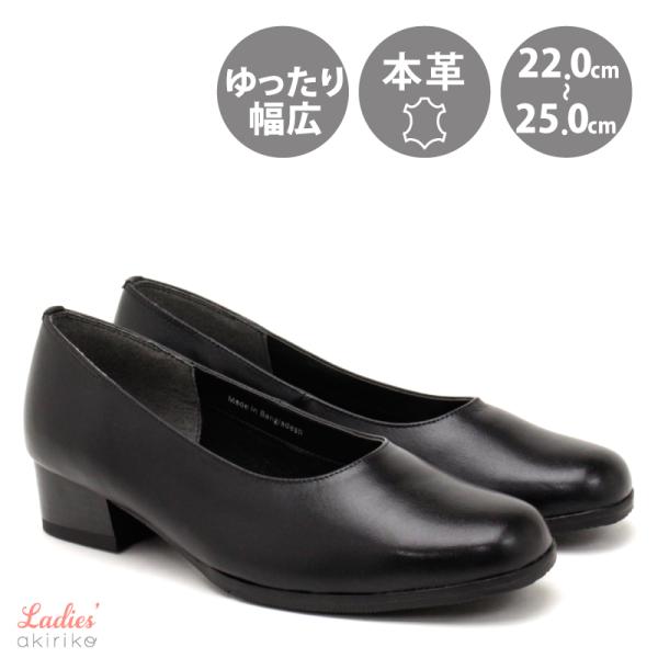パンプス フォーマル 本革 幅広 EEEE 約4.0cmヒール レザー 冠婚葬祭 ビジネス 小さい 黒 ブラック st532 アキリコ