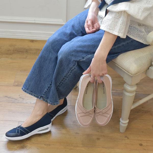 レインパンプス バレエシューズ スニーカー底 撥水 ニット エアーソール オールウェザー ラウンドトゥ 雨靴 ローヒール フラット 軽量 バスルーム No.654131